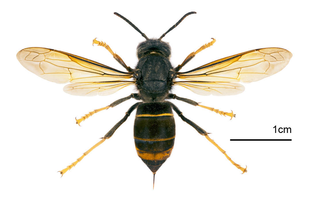 - It's abdomen is mostly black except for it's fourth abdominal segment which is a yellow band located towards the rear.