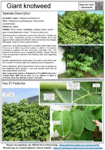 - Giant knotweed is a tall perennial plant, measuring 2-5m in height, and up to 5m